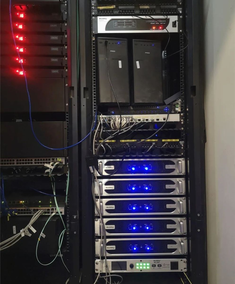 整個擴聲系統搭配H系列功放、MA1610-F調音臺、Stride8.8處理器、SC-902電源時序器,保證了高品質的聲效輸出、保持了系統的穩定運行,更方便了人員的日常管理與使用。