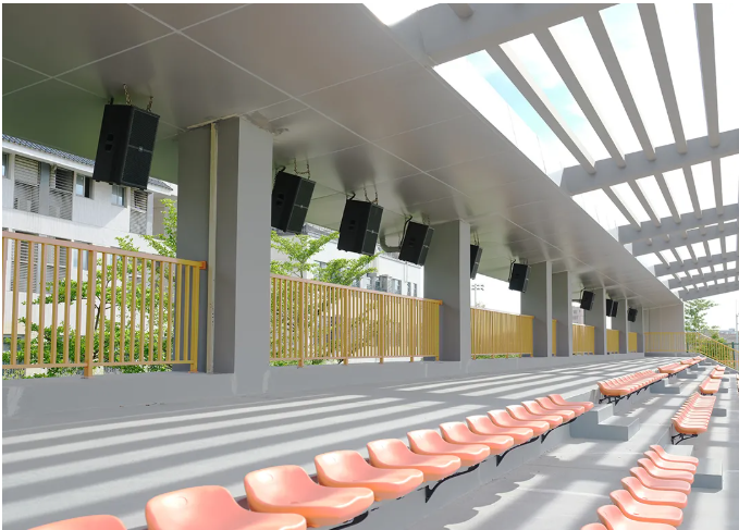 訓練場地 本項目訓練場地分為三個,在系統(tǒng)設計期間,考慮到三個場地的設計結構基本相同,最終采用相同的訓練場館擴聲系統(tǒng),使得整個深圳市青少年足球訓練基地擴聲系統(tǒng),無論是從視覺上還是聽音效果上,都達到了完美的風格和諧統(tǒng)一。 訓練場地一和訓練場地二的主擴聲系統(tǒng)采用了32只MISSION的MSW系列全頻防水音箱。兩個場地各采用了16只MSW9012F和MSW9015F的防水線陣系統(tǒng),分布懸掛于兩個場地觀眾席上方覆蓋全場,各搭配8臺MI1300的功率放大器,將MSW系列全頻防水音箱性能發(fā)揮到極致。 訓練場地三采用了16只MSW9012F全頻防水音箱固定安裝于墻頂,MSW系列的安裝方式非常靈活,可根據(jù)不同的項目情況進行靈活安裝,適合各類墻面安裝應用,同時搭配8臺MI1300的功率放大器,使其聲音能量均勻覆蓋聽音區(qū)。