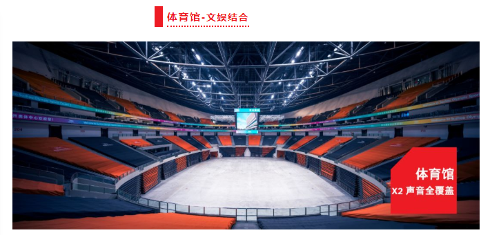 游泳館除了設有標準競賽游泳池、訓練池外,還設有各種水療休閑設施、部分水上用品商業以及兒童娛樂池和滑道等,供普通市民休閑娛樂使用。在游泳館頂部,業主同樣選用了白色EVH系列揚聲器,在美觀度和品質方面和場館高度統一。