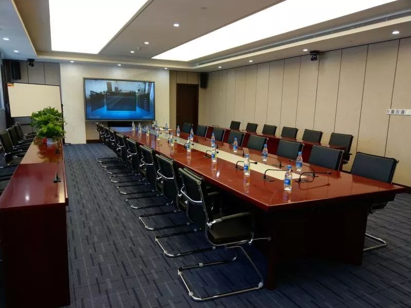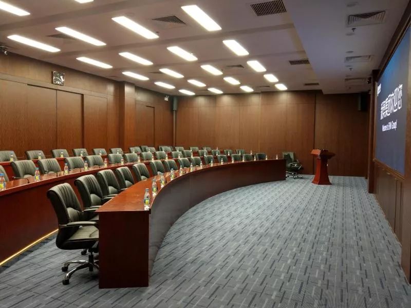 410董事局會議室長11.77m、寬6.8m、高2.8m,面積約80㎡,可容納坐席31個,主要用于董事局內(nèi)部會議、工作匯報、日常會議等。
