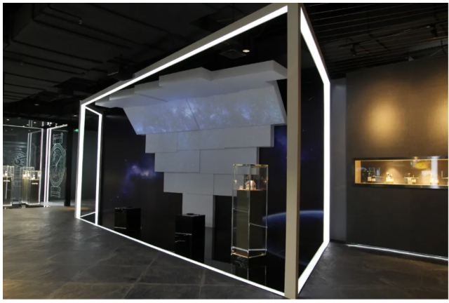 深圳飛亞達計時文化中心總面積2800㎡共兩層,以“時間有痕 空間無限”為核心理念,統(tǒng)領(lǐng)內(nèi)容布局和設(shè)計元素。整個展館的設(shè)計視覺元素,以點、線、面的一貫到底卻又靈動多變來詮釋“時間有痕”,以點、線、面、營造的無邊界、連貫的、系統(tǒng)的展示空間來表達“空間無限”,將飛亞達品牌氣質(zhì)與視覺空間完美融合,引發(fā)人們對美好生活的聯(lián)想和對時間的認知。