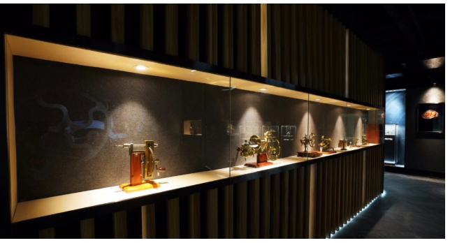 本工程飛亞達博物館博物館分為一層和二層兩個部分。一層主要以企業(yè)展廳為主,可用面積為700㎡左右。展示內(nèi)容囊括了飛亞達企業(yè)軌跡及品牌產(chǎn)品推介兩部分,以飛亞達品牌時間線為綱,通過燈光和投影的配合,展現(xiàn)出“時間簡史”、“逢時而生”、“審時而動“、“應(yīng)時而顯”、“馭時而創(chuàng)”五大主題區(qū)域,演繹出飛亞達的企業(yè)崛起之路。在這里,觀眾可以感受到飛亞達對時間的認知,對生活的主張,深刻體會到飛亞達品牌的內(nèi)涵底蘊和工匠精神。