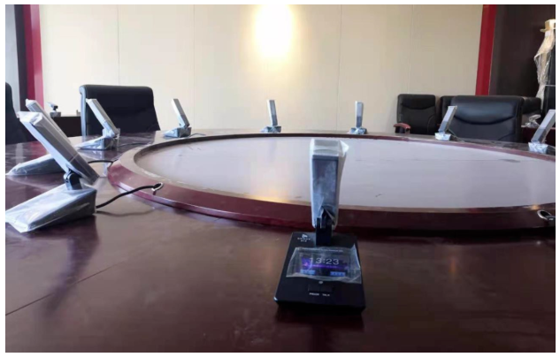 作為智慧音視頻會議領域的創新者,DIGIRATE迪吉瑞也全程參與了長春紅旗創新大廈的建設,為大廈內的眾多會議室提供了完整智能會議系統解決方案,得到用戶的高度贊賞。其中在最重要的圓桌會議室提供了X系列數字會議系統,X系列會議話筒專門服務于高端會議市場,話筒采用短咪桿,高靈敏度設計,外觀簡潔大氣,話筒咪芯部分采用橡膠避震材料,盡可能的避免臺面噪聲對話筒拾音的影響。話筒的另一大特色是在話筒上增加一塊分辨率為480×320的3.5寸全彩色電容式觸摸顯示屏。不僅可以滿足正常的發言管理,還支持圖片顯示,話筒請求服務功能,可以根據實際會議情況顯示指定的圖片。話筒的外觀造型上采用金屬氧化面板,簡潔硬朗的外觀設計表現出簡約莊重的會議設備風格。