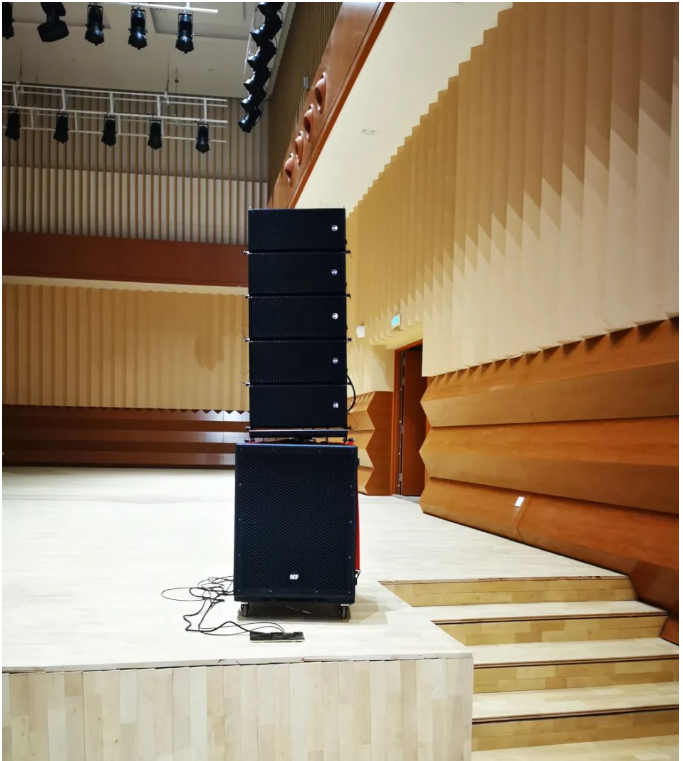 琴島”音樂(lè)廳音響系統(tǒng)采自意大利進(jìn)口品牌RCF音響,HDL有源線陣列系統(tǒng),舞臺(tái)返聽(tīng)為兩組ART300有源系列音箱。