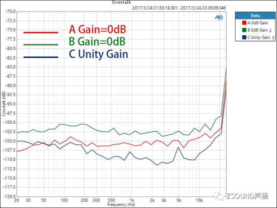 圖11. 三款調(diào)音臺(tái)的串?dāng)_對(duì)比