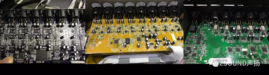 通過(guò)上述測(cè)試對(duì)比,我們可以基本判斷,在各項(xiàng)性能上,C的指標(biāo)最高,A其次,B型號(hào)最低。這些指標(biāo)對(duì)用戶的意義是什么呢?——是音質(zhì)的差別,而這背后是電路設(shè)計(jì)和電路元器件的選用上差別。對(duì)于數(shù)字調(diào)音臺(tái)來(lái)說(shuō),話放的電路設(shè)計(jì)和元器件選用,A/D、D/A轉(zhuǎn)換芯片,這些很大程度上決定了其性能。入門級(jí)的調(diào)音臺(tái)為了實(shí)現(xiàn)大眾化的價(jià)格,往往不得不在音質(zhì)和成本之間折中。我們分別將手頭的3個(gè)型號(hào)的調(diào)音臺(tái)的進(jìn)行拆機(jī),分別看看其電路設(shè)計(jì)和元器件用料。