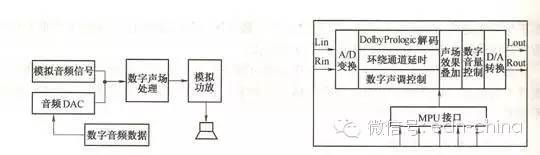 圖2 數字化功放電路的組成框圖 圖3 數字聲場處理模塊原理框圖