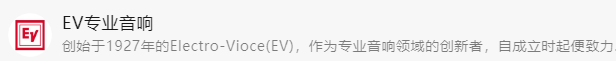 創始于1927年的Electro-Vioce(EV),作為專業音響領域的創新者,自成立時起便致力于為揚聲器、話筒和音頻電子產品的聲學性能和可靠性設定新的行業標準。1984年,EV正式進入中國,為中國專業音響市場帶來了世界領先的技術和產品。