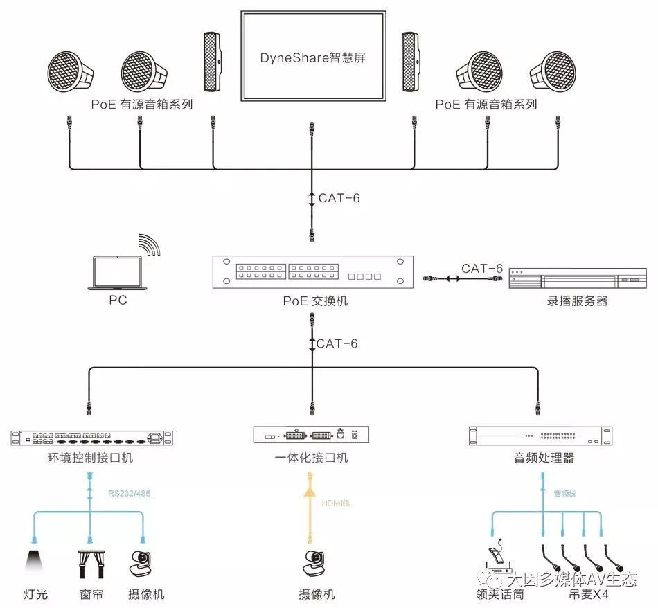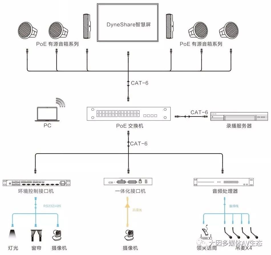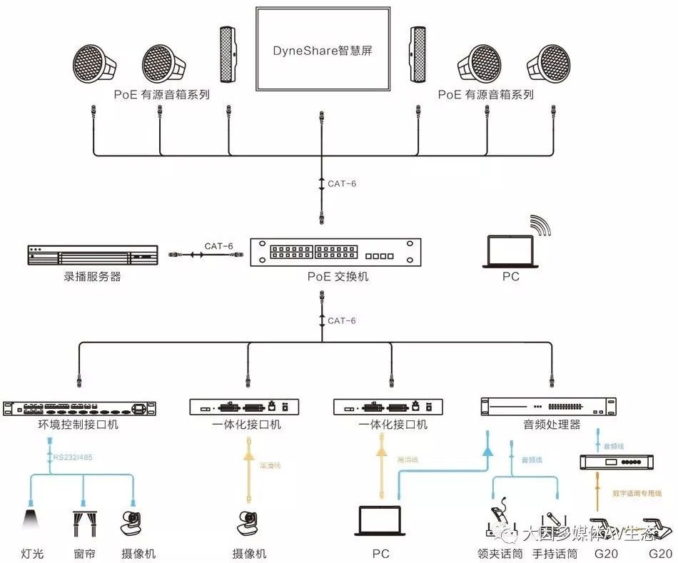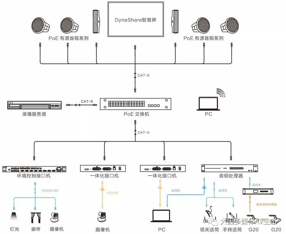 教室是學校最常見的場所,但是教室的大小、用途、使用人(教室和學生)卻不盡相同。雖然有所區別,但每間教室授課時所需要的音視頻系統非常類似。此類音視頻系統的建設必須方便教師的使用,而且也要滿足學生清晰明了地觀看和聆聽上課內容,老師上課的內容和分析方便學生打包帶走。不僅如此,系統的使用必須簡單,方便教師和學生的獨自使用。