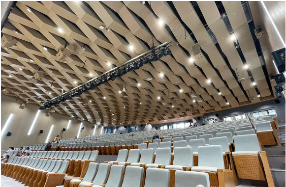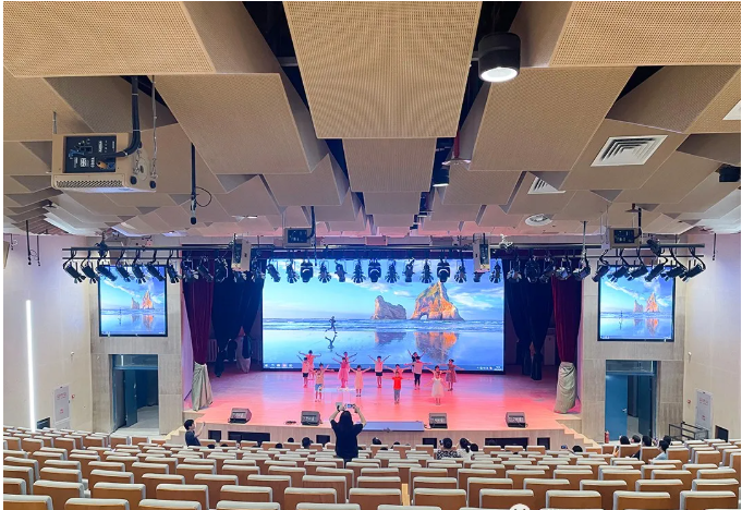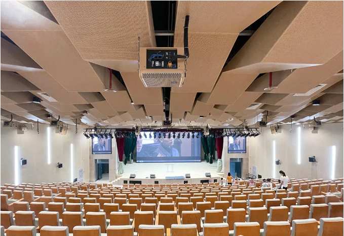 校方要求多功能廳音頻擴(kuò)聲系統(tǒng)應(yīng)具備足夠的聲音清晰度、均勻的聲場覆蓋和準(zhǔn)確自然的聲像定位,在確保多種功能性使用需求的同時,還要求設(shè)備外觀設(shè)計(jì)與多功能廳設(shè)計(jì)風(fēng)格統(tǒng)一,不僅性能卓越,外觀亦要簡潔大氣不失設(shè)計(jì)感,符合學(xué)校國際化的教學(xué)理念,該功能廳即將成為孩子們展示風(fēng)采的多元化舞臺。