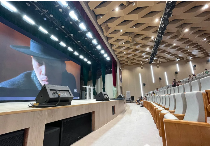 學(xué)校的多功能廳為本次的項(xiàng)目場地。多功能廳可容納600多名學(xué)生,配備升降舞臺和專業(yè)的音響設(shè)備,主要用于會議、學(xué)術(shù)報(bào)告、文藝戲劇類節(jié)目演出,同時要兼顧音樂演奏、歌舞的演出要求,在功能上將其定位為一座多功能劇場。