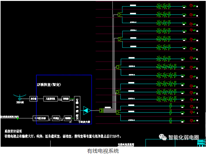 外部有線電視信號引入建筑物,用同軸電纜或網(wǎng)線實現(xiàn)建筑物內(nèi)傳輸、分配和交換信息的電視系統(tǒng)。