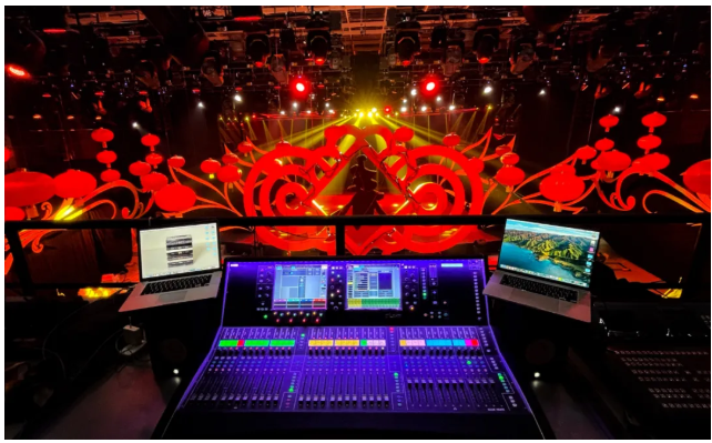 系統(tǒng)吊裝位置的選擇,也盡量避開(kāi)了燈籠對(duì)波束的遮擋,穿插在兩只燈籠的間隙處。這樣既滿足了導(dǎo)演對(duì)于舞美設(shè)計(jì)的需求,同時(shí)也保證了場(chǎng)地內(nèi)聲能的有效投射。