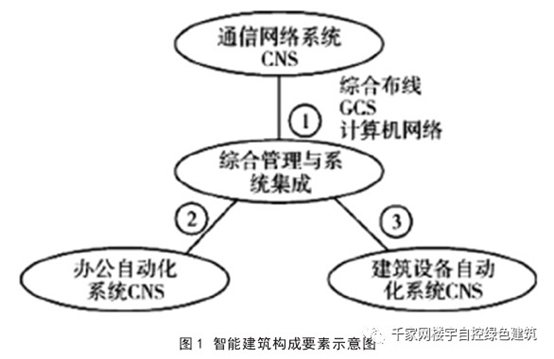 智能建筑中,弱電設(shè)備較多,一般將弱電系統(tǒng)視為智能建筑的核心部分?,F(xiàn)代智能建筑包括通信、自動(dòng)控制、綜合布線等方面,如圖1所示。