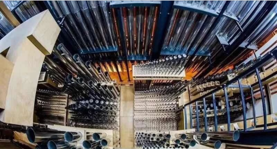 安放于音樂(lè)廳的管風(fēng)琴造型典雅,音色飽滿(mǎn),是目前國(guó)內(nèi)體積最大、栓數(shù)最多、音管最多、音色最豐富的一架,擁有94個(gè)音栓,發(fā)聲管達(dá)6500根之多,能滿(mǎn)足各種不同流派作品演出的需要,因此被形象地稱(chēng)為音樂(lè)廳的“鎮(zhèn)廳之寶”。