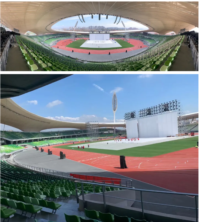 為確保現(xiàn)場最佳的視聽體驗效果,本屆體育大會擴聲系統(tǒng)采用源自德國的EV32只X1I-212/90-FGB垂直線性陣列搭配12只X2-212/120心形指向性超低作為主擴組合,16只EVF-2151D垂直線性陣列搭配4只X12-128次低頻音箱及8只EVF-1181S超低音箱作為兩側(cè)補聲組合,主席臺和演員返聽由8只多功能鏡像全頻揚聲器MFX-15MC擔(dān)任,整個擴聲系統(tǒng)由32臺PX5:4功放進行驅(qū)動。