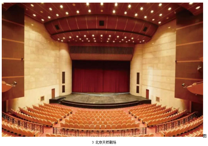 標(biāo)準(zhǔn)劇場中,中置揚聲器組的安裝通常分為暗裝和明裝兩種。暗裝一般是安裝在舞臺鏡框上沿預(yù)留的聲橋當(dāng)中,如北京天橋劇場(圖3)。明裝則是吊掛在舞臺燈桿或預(yù)留的吊點上,如北京天橋藝術(shù)中心大劇場(圖4)。暗裝對觀眾的視覺影響最小,如果劇場擴聲系統(tǒng)設(shè)計合理,建筑聲學(xué)指標(biāo)達標(biāo),且在鏡框高度不是很高的情況下,劇場中置聲道暗裝是最好的安裝方式。但是國內(nèi)劇場的實際情況并不樂觀,且不同演出的系統(tǒng)工程師和音響設(shè)計師都有各自的設(shè)計和考量,暗裝中置聲道位置又基本不可調(diào)整,所以很多劇場中暗裝的中置聲道使用率很低。明裝的中置聲道更便于安裝、拆卸以及調(diào)整,更加適合流動性強的演出,因此,越來越多的現(xiàn)代化劇場采用這種安裝方式。