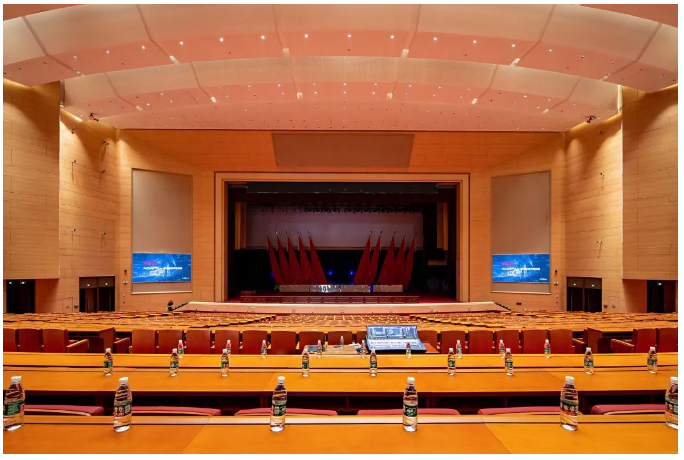 漢廳觀眾席分為兩層,共2350座,其中池座1650座、樓座700座,池座部分均帶有會(huì)議桌。與傳統(tǒng)劇場(chǎng)劇院相比,漢廳面積巨大,其臺(tái)口到觀眾席后排進(jìn)深約41.4m,同時(shí),觀眾席呈扇形展開(kāi),后部最寬部分約50.2m。從聲學(xué)角度來(lái)說(shuō),如此寬度和進(jìn)深的觀眾席空間,對(duì)于聲場(chǎng)的均勻覆蓋而言具有非常大的挑戰(zhàn)。由于漢廳是高端演藝及重要會(huì)議場(chǎng)所,因此其對(duì)聲音的呈現(xiàn)有著極高的要求,在滿足設(shè)備的安全性與穩(wěn)定性的基礎(chǔ)上還需要保證足夠的聲壓級(jí)、優(yōu)秀的音質(zhì)以及良好的語(yǔ)言清晰度。與此同時(shí),擴(kuò)聲系統(tǒng)還要具備: